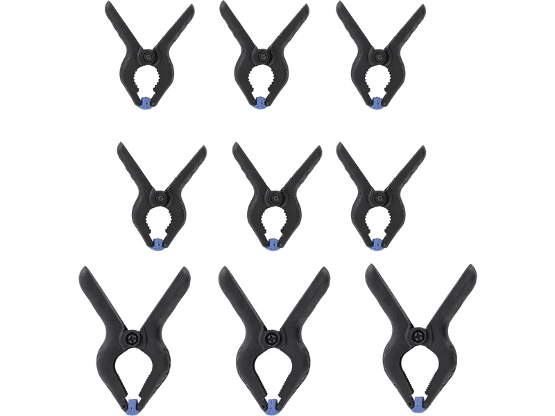 Modelcraft nylonové svorky 75mm 3ks a 50mm 6ks mají otočné čelisti pro rovnoměrný tlak. Nepostradatelný pomocník pro modeláře při stavbě modelů a pro kutily. Rozpětí čelistí 30mm (50mm délka) a 40mm (75mm délka).