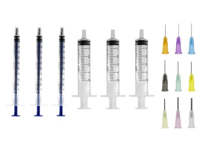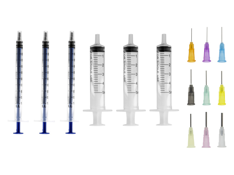 Modelcraft precizní aplikátory (sada) s injekčními stříkačkami o objemu 1ml a 5ml a sadou jehel s různě velkými otvory.
