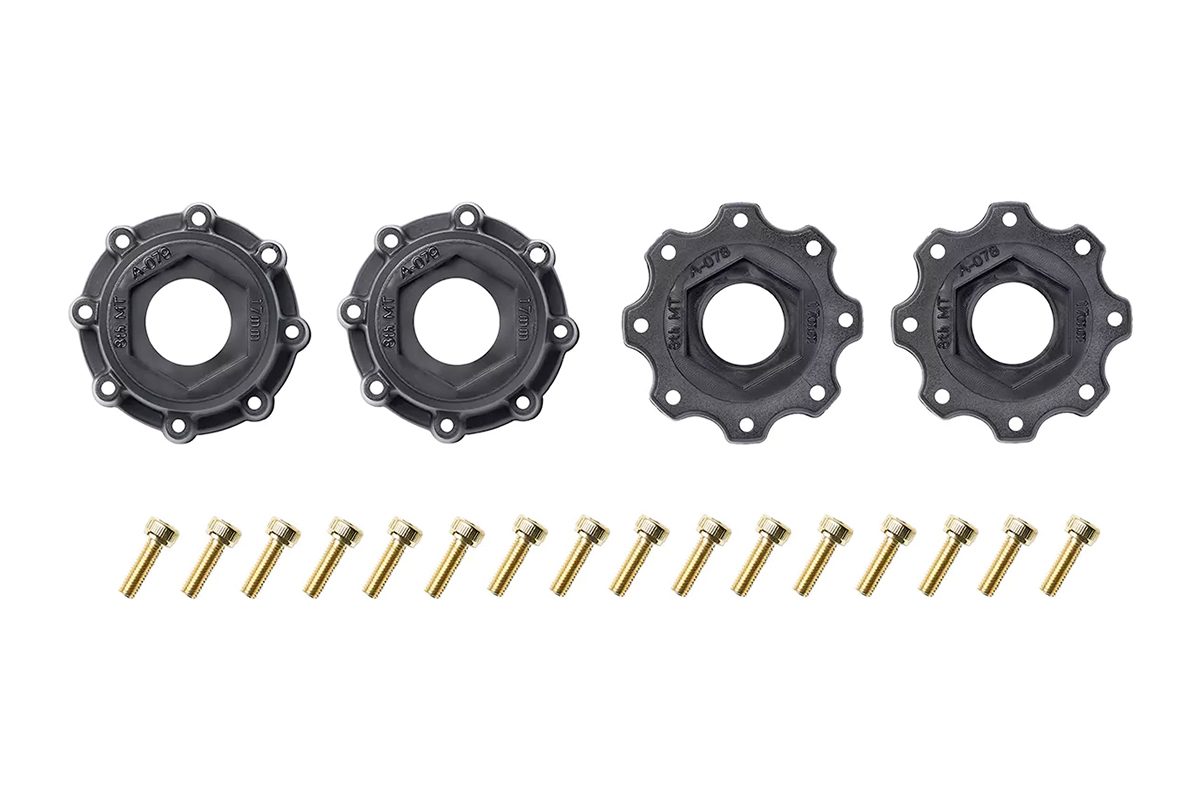 Systém odnímatelných hexů je nová funkce, která vám umožní vybrat si z různých středů, tak aby kola pasovala na vaše RC auto. Ty jsou součástí balení a lze je snadno nasadit a sejmout pomocí přiložených šroubků.