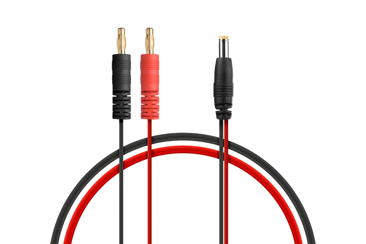 Nabíjecí kabel pro vysílač Futaba se 4mm banánky. Například pro FX-36 atd. DC koncovka s vnějším průměrem 4,75mm, vnitřním průměrem 1,7mm a plusovým pólem na vnitřní straně.