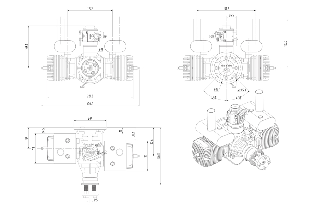 | Doporučená vrtule | Dvoulistá 23x8 ; 23x10 ; 24x8 ; 24x10 |