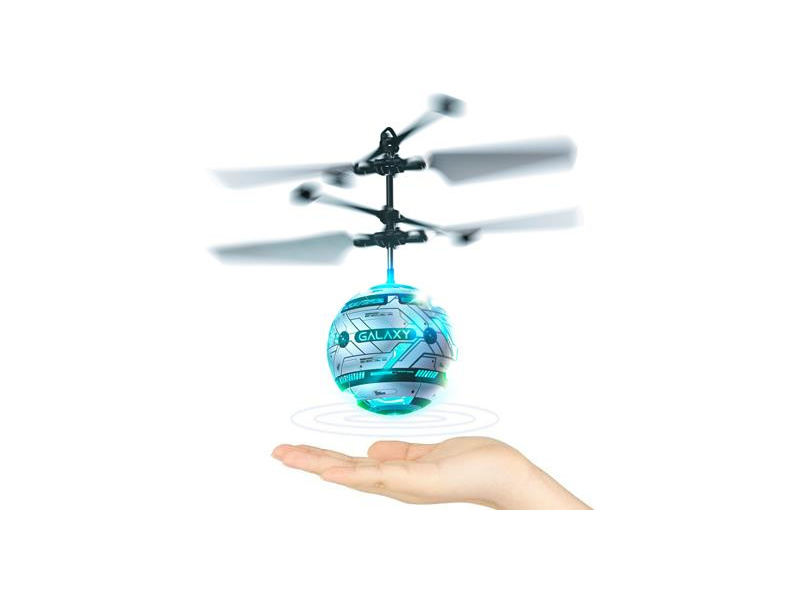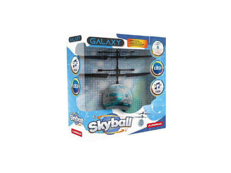 Létající zábavná hračka Skyball Galaxy s blikajícím LED světlem, integrovaným reproduktorem vydávajícím galaktické zvuky. Skyball se ovládá ručně pomocí senzoru přiblížení ze spodní strany. Integrovaný LiPol akumulátor 3,7V 100mAh a USB nabíječ. Určeno do interiéru.