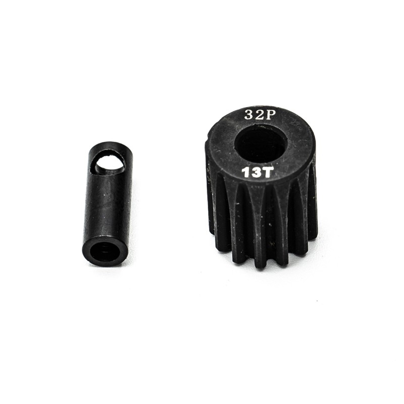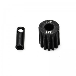 Ocelový pastorek s modulem 32DP a vrtáním pro motorovou hřídel 5mm s přeloženým adaptérem pro motorovou hřídel 3,17mm.