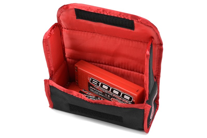 Ochranný obal pro přepravu nebo uskladnění LiPo akumulátorů. Vnitřní rozměr je 6.5 x 6.5 x 16 cm, obal je vyroben z nehořlavé textilie. Obal umožňuje uskladnit až 2 baterie standardních rozměrů.