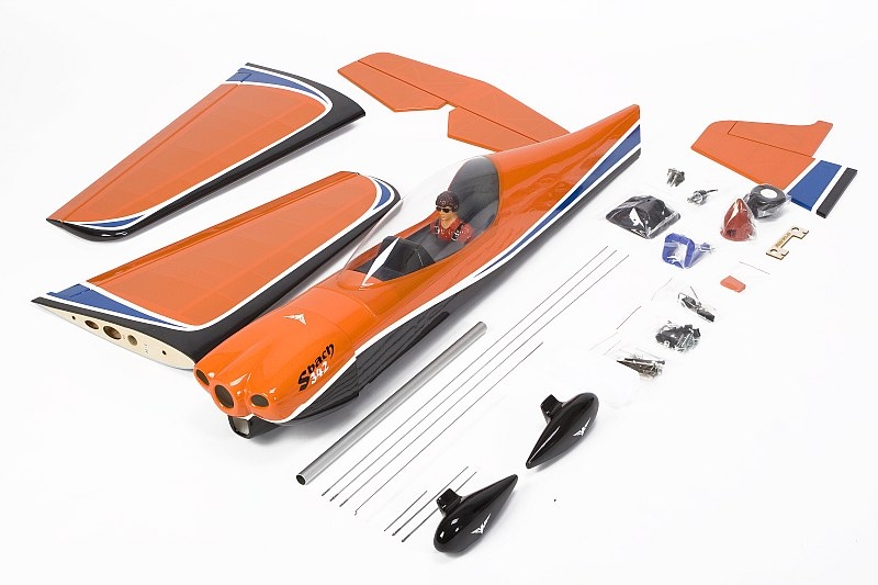 Stavebnice obsahuje: nažehlovací fólií potažený trup, křídlo a ocasní plochy, nastříkaný laminátový motorový kryt, motorové lože, kompletní sadu drobného příslušenství, duralový podvozek, laminátové kryty kol, ostruhu, kola, akrobatickou palivovou nádrž, vrtulový kužel a podrobný obrázkový návod.