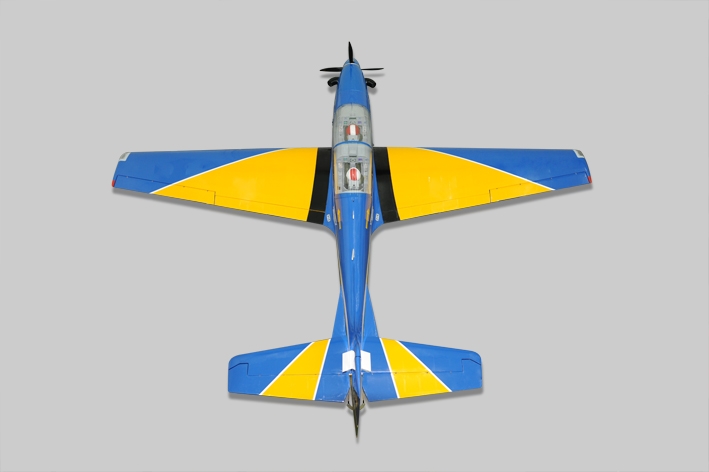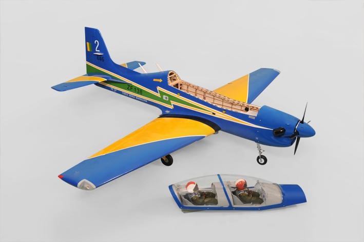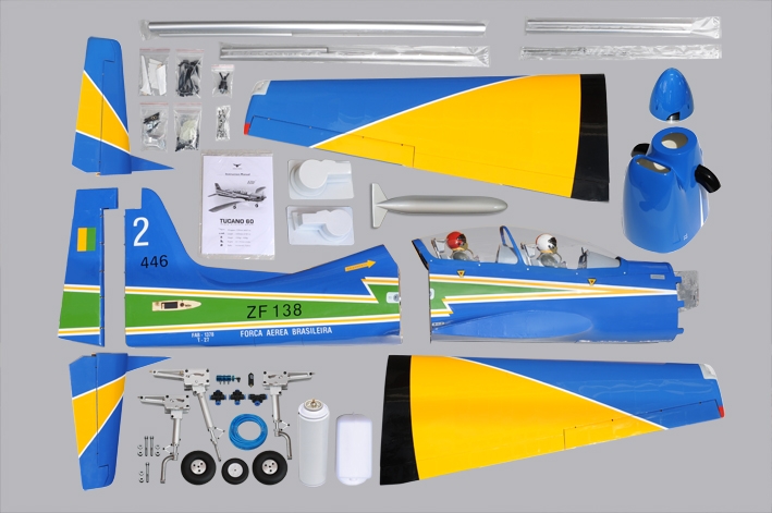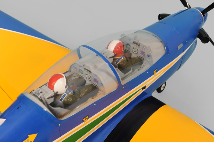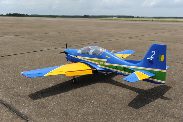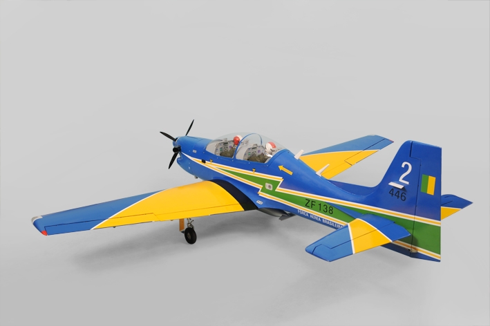 ARF stavebnicebrazilského vojenského cvičného letounu klasické celobalsové konstrukce pro pohon benzínovým motorem 40-60 ccm pro zkušené piloty obřích modelů.