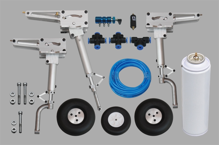 Podvozek je tříkolový pneumatický zatahovací s odpruženými nohami a řiditelnou příďovou nohou.