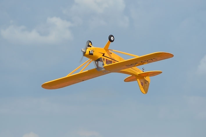 Polomaketa legendárního amerického sportovního hornoplošníku klasické celobalsové konstrukce pro pohon dvoudobým motorem 7,5-10 ccm, čtyřtaktem 8-12 ccm nebo elektromotorem třídy AXI 4120 pro mírně pokročilé piloty.