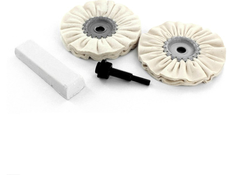 Sada na leštění chromovaných dílů Policraft lešticí sada DIY, obsahuje kotouč 100mm tvrdý, kotouč 100mm měkký, upínací stopku a bílou tyčinku pro vysoký lesk. Vytvářejte profesionální povrchovou úpravu chromovaných povrchů s touto leštící sadou.