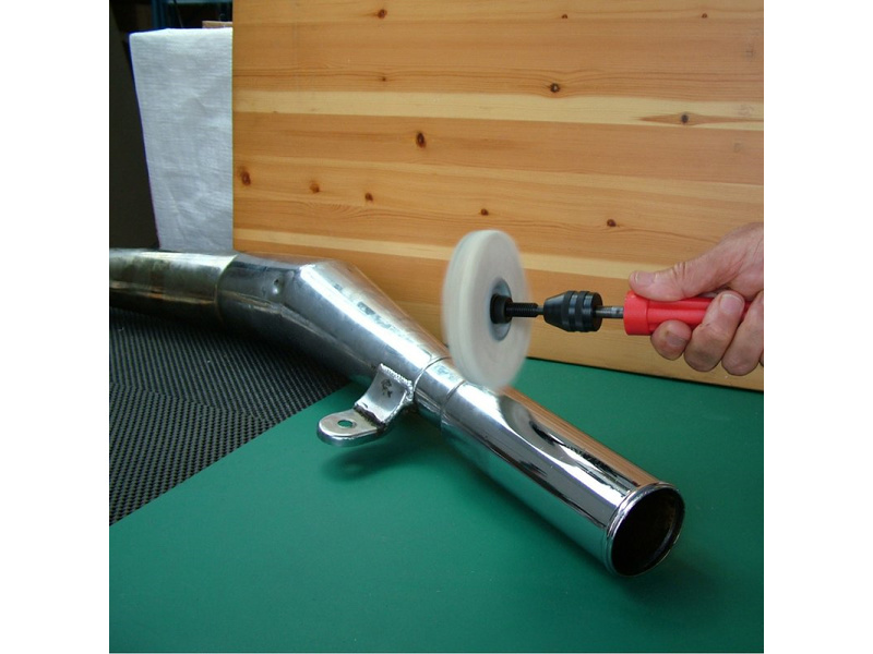 Sada na leštění chromovaných dílů Policraft lešticí sada DIY, obsahuje kotouč 100mm tvrdý (pro předleštění), kotouč 100mm měkký (pro finální leštění), upínací stopku (unašeč) a bílou tyčinku pro vysoký lesk. Vytvářejte profesionální povrchovou úpravu chromovaných povrchů s touto leštící sadou. Stopkový unašeč s instalovaným kotoučem můžete upnout do ručního nářadí s klasickým sklíčidlem nebo závitem pro Flexi náhony.