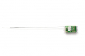 Přijímač je vybaven kontaktovými lištami pro standardní konektory UNI (=JR/Graupner, Hitec, Futaba); vývody jsou orientovány ve směru podélné osy přijímače.