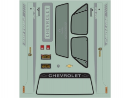 Balení obsahuje čirou karoserii 1:10 1982 Chevy K-10, maketové příslušenství - mřížka chladiče, boční zrcátka, přední a zadní nárazník, brzdová světla. Včetně masky oken a archu samolepek.