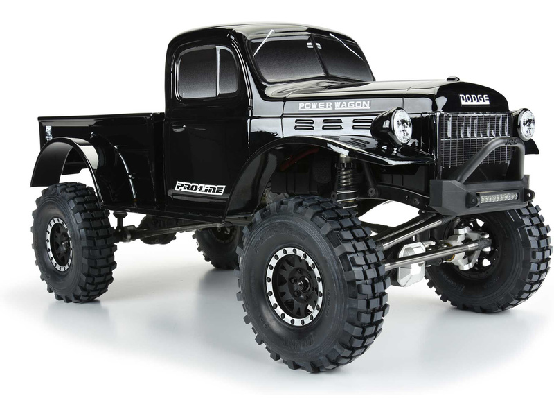 Pro-Line karosérie černá 1946 Dodge Power Wagon, pro RC modely aut typu Crawler v měřítku 1:10, rozvor 312mm, délka 472mm, šířka 147mm. Vyrobeno z odolného lexanu.