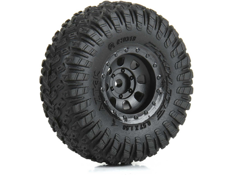 Aztek je revoluční pneumatika pro jízdu po kamenitých površích, která nově definuje standardy výkonu v terénu. Pneumatika má větší průměr a šířku než standardní pneumatiky na modelu Axial SCX30. Vyznačuje se stupňovitým dezénem ve tvaru šípu s odolnými bočnicemi a lamelami pro lepší stabilitu při jízdě do svahu. Kostra vyztužená voštinovým vzorem zvyšuje pevnost bočnic a zajišťuje konzistentní ovladatelnost, což vám umožní tvrdší jízdu v prudkých stoupáních a technických tratích.