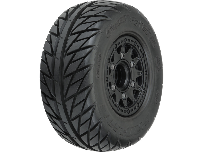 Kompletní kola Pro-Line pro RC modely aut 1:10. Rozměr ⌀109x46 mm. Disk Raid má černou barvu. Pneumatiky Street Fighter 2.2"/3.0" SC, tvrdost směsi M2 (střední). Unašeč je šestihran 12 mm.