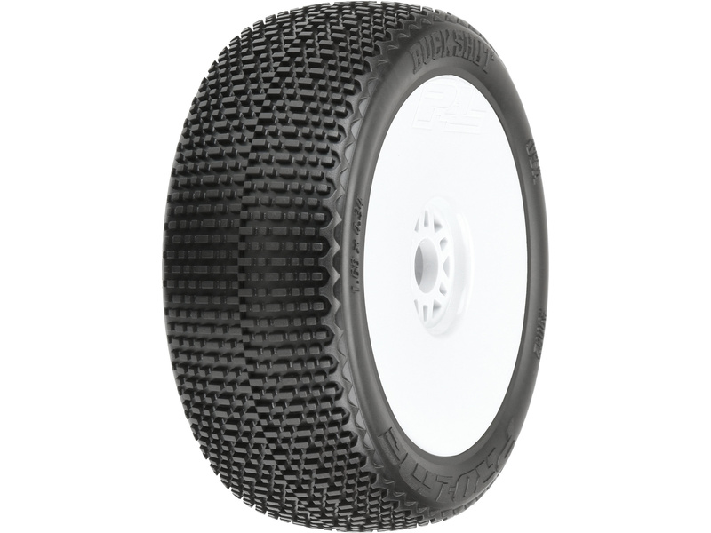Kompletní kola Pro-Line pro RC modely aut 1:8. Rozměr ⌀110x41 mm. Disk Velocity má bílou barvu. Pneumatiky Buck Shot Buggy, tvrdost směsi M3 (měkká). Unašeč je šestihran 17 mm. Vložka Closed Cell.
