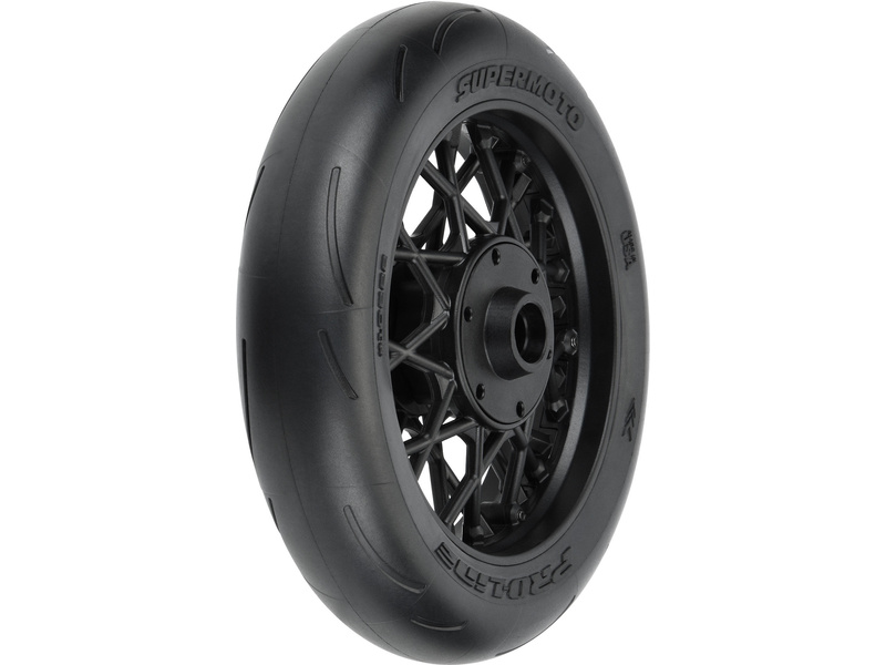 Náhradní díl pro RC model motorky Losi 1:4 Promoto-MX: Pro-Line kolo s pneu 1:4 Supermoto přední, disk černý. Semi-Slick běhounu pro maximální přilnavost na asfaltovém povrchu. Skutečný vzhled Supermoto.