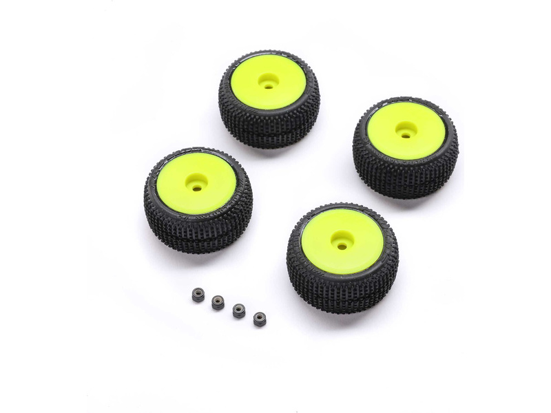 Kompletní kola Pro-Line pro RC modely aut 1:28. Disk ve stylu závodní Truggy má žlutou barvu. Pneumatiky Blockade s kolíky. Ideální pro RC model auta Losi Micro-T.