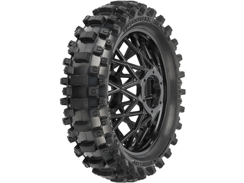Pneumatika Dunlop Geomax MX33 je namontována na černém ráfku Bullyspoke V2 Bead společnosti Pro-Line, které má výhody z hlediska odolnosti i estetiky. Tloušťka paprsků byla zvýšena, aby se zabránilo ohýbání při tvrdých nárazech. Patky paprsků jsou na ráfku u středu kola, který odpovídá skutečnému motokrosu. Uvnitř pneumatiky je vysoce kvalitní, odolná vložka s uzavřenými buňkami.