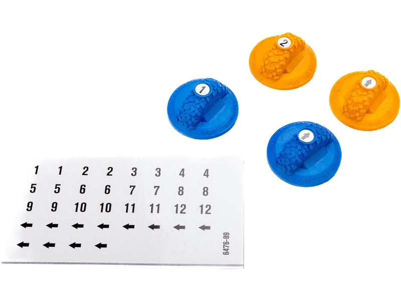 Proměňte jakýkoli terén v závodní dráhu pro váš RC model auta v měřítku 1:30 (Axial SCX30). Celkem 12 lehkých gumových branek ve tvaru pneumatiky obsahuje plošku pro nalepení čísla a směru. Včetně archu samolepek. Od hromad kamení na zahradě až po obývací pokoje, garáže nebo kancelářské stoly, značení cest Pro-Line vám umožní vytvářet trialové trasy kdekoli.