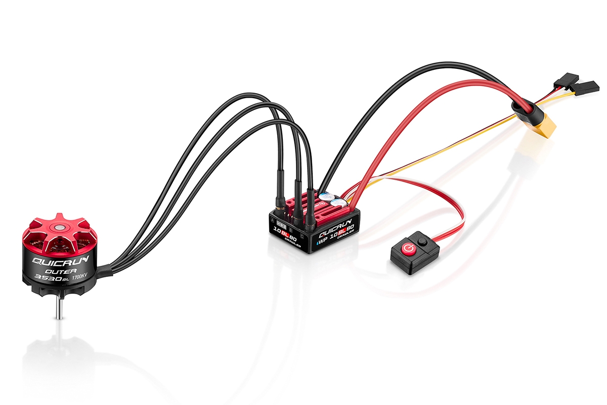 - Pro motory: Ideální se střídavým motorem Hobbywing QUICRUN Outer 3530SL nebo jinými střídavými bezsenzorovými motory této velikosti stejně jako se stejnosměrnými motory řad 540 a 555