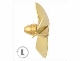 Raboesch lodní šroub tř.150 3-listý, průměr 35mm, směr otáčení levý, montáž na hřídel se závitem M4, materiál mosaz pájená stříbrem.