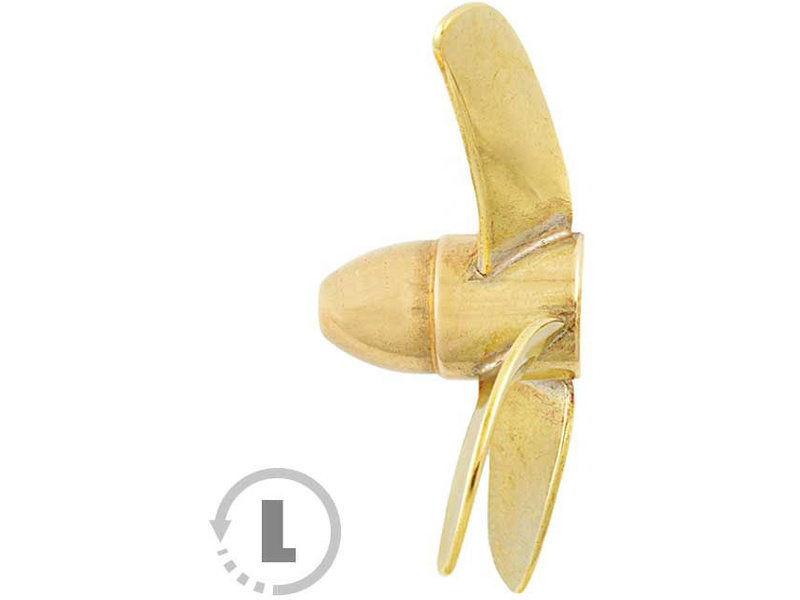 Raboesch lodní šroub tř.158 4-listý, průměr 45mm, směr otáčení levý, montáž na hřídel se závitem M4, materiál mosaz pájená stříbrem.