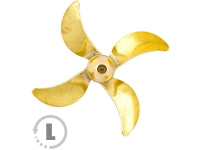 Raboesch lodní šroub tř.158 4-listý, průměr 60mm, směr otáčení levý, montáž na hřídel se závitem M4, materiál mosaz pájená stříbrem.