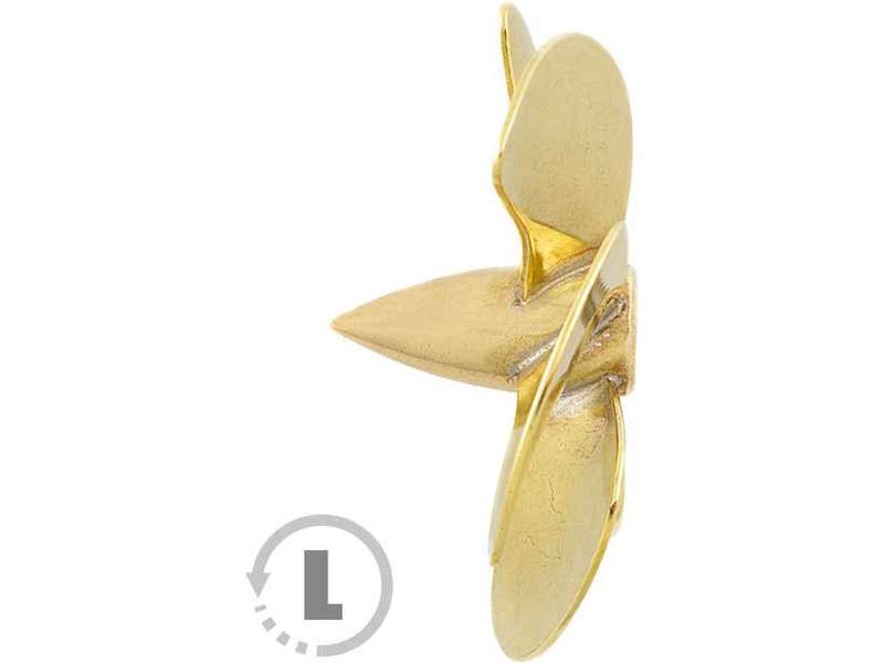 Raboesch lodní šroub tř.168 5-listý, průměr 35mm, směr otáčení levý, montáž na hřídel se závitem M4, materiál mosaz pájená stříbrem.