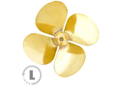 Raboesch lodní šroub tř.174 4-listý, průměr 30mm, směr otáčení levý, montáž na hřídel se závitem M4, materiál mosaz pájená stříbrem.
