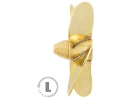 Raboesch lodní šroub tř.174 4-listý, průměr 35mm, směr otáčení levý, montáž na hřídel se závitem M4, materiál mosaz pájená stříbrem.