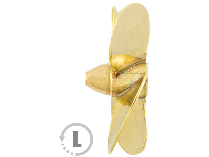 Raboesch lodní šroub tř.174 4-listý, průměr 40mm, směr otáčení levý, montáž na hřídel se závitem M4, materiál mosaz pájená stříbrem.