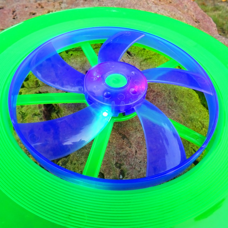 Jsou tu nové svítící létající talíře LIGHT UP s vlastním rotorem. Chtějí si Vaše děti hrát s létajícím talířem až do noci? Doposud to byl problém, ale díky našim osvětleným LIGHT UP Frisbee Vás už nezaskočí ani šero, ani tma. Talíře využívají technologii LED a díky svému rotoru se ve vzduchu udrží déle než běžná frisbee. Je to jako úplně nová dimenze zábavy!