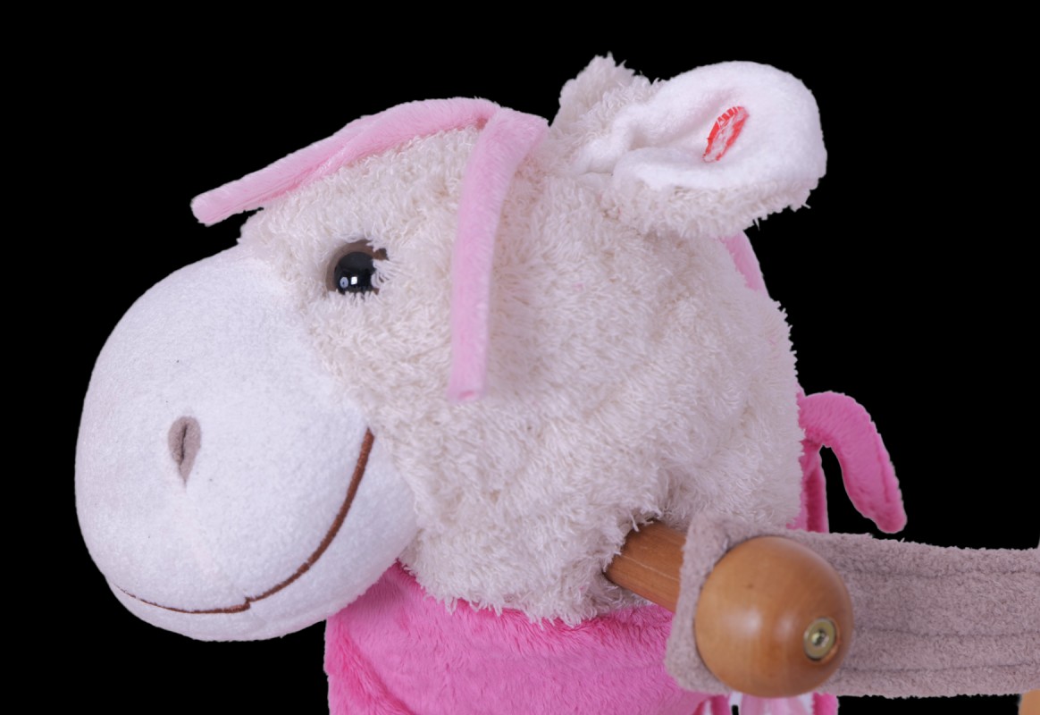 Houpací koník je vyroben z příjemného plyšového materiálu v barvě jako na obrázku. Díky bezpečnému opěradlu s odnímatelným ochraným páskem se bude každé dítě cítit v bezpečí. A to není všechno! Lady Chita hraje Abecedu.