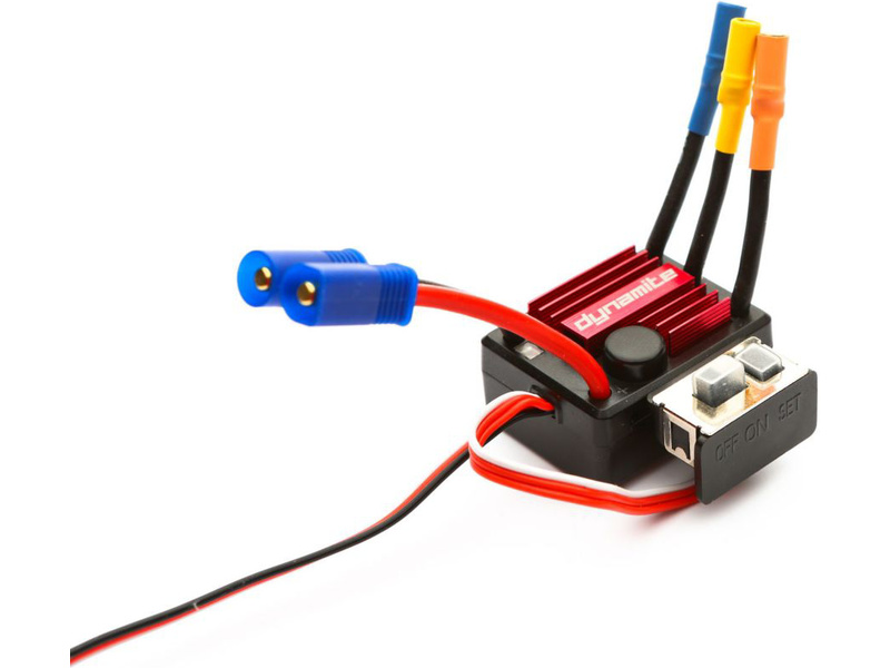 Střídavý regulátor pro mini auta s brzdou a reverzem pro stálý maximální odběr 25A. Konektor napájení EC3, kolíky 3,5mm k motoru. Rozměry 36x28x21 mm, hmotnost 38g. Ochrana proti přetížení.