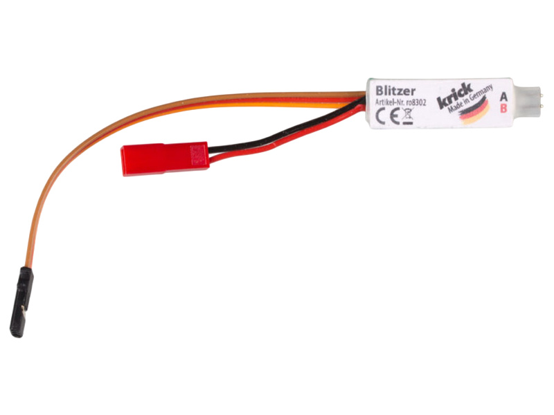 Světelný zábleskový modul vhodný pro připojení k LED i jiným osvětlením. Rychlost záblesků může být vypnuta, zapnuta, nebo ji můžete regulovat na proporcionálním kanále. Tento modul je vhodný pro připojení k přijímači.