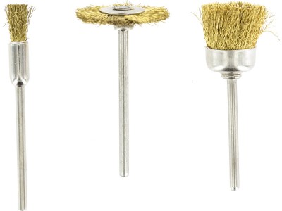 Rotacraft stopkový drátěný kotouč mosazný sada 3ks různých typů v balení. Tyto kotouče jsou určeny pro šetrné čištění kovu, plastu, skla, keramiky, kamene, opravy apod. Lze ošetřit vnější i vnitřní povrchy. Stopka do kleštiny 2,35mm, průměr nástrojů cca 5mm, 15mm a 20mm.