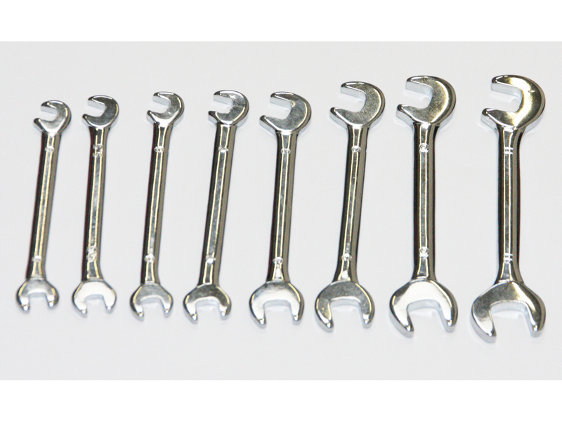 Sada maticových plochých otevřených oboustranných klíčů na šestihranné hlavy 5, 5.5, 6, 7, 8, 9 a 10 mm.