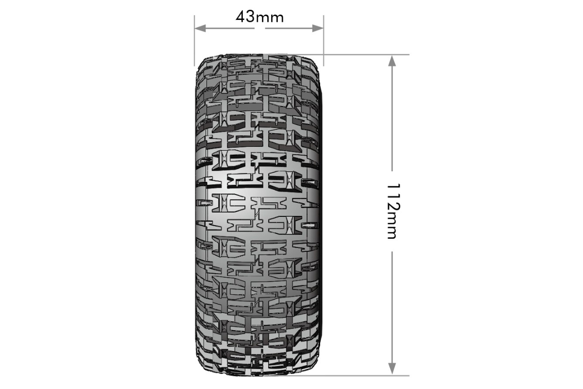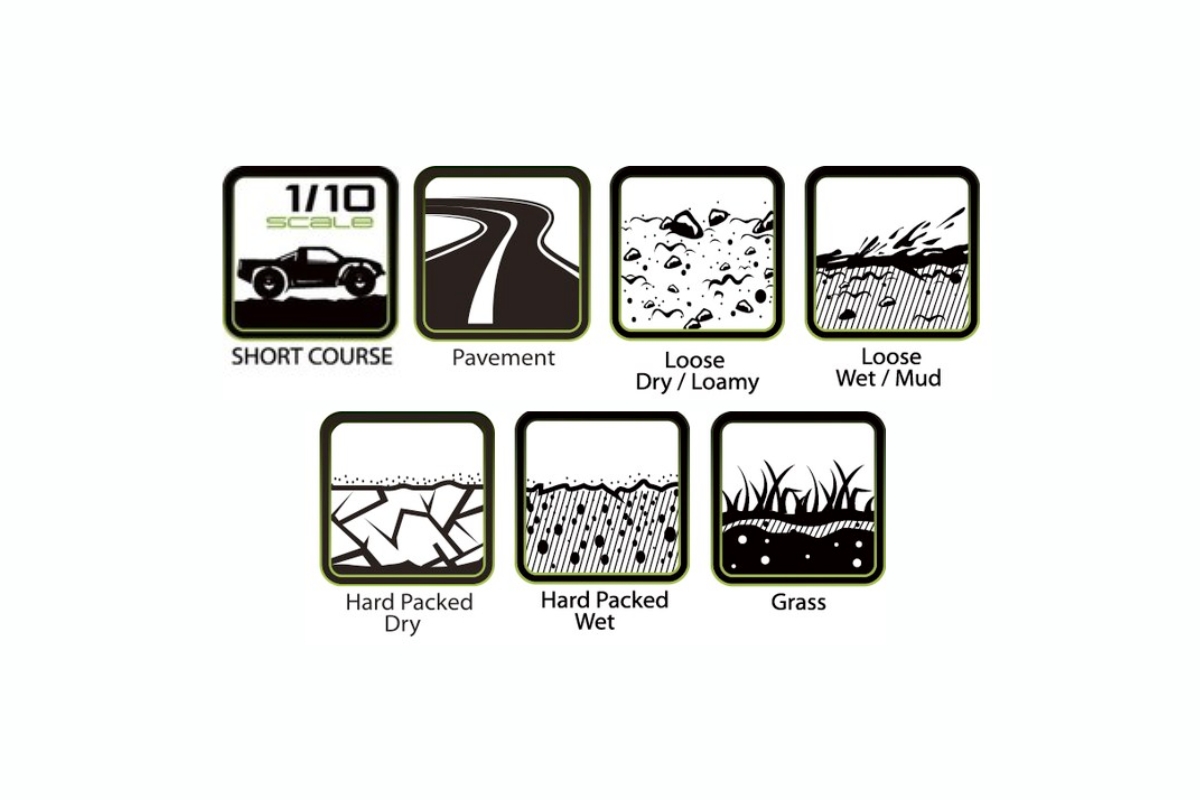 Kompletní kola pro short course trucky 1/10 se sadou vyměnitelných hexů o různých rozměrech a offsetech. Pneumatiky vhodné na všechny povrchy, do sucha i do mokra.