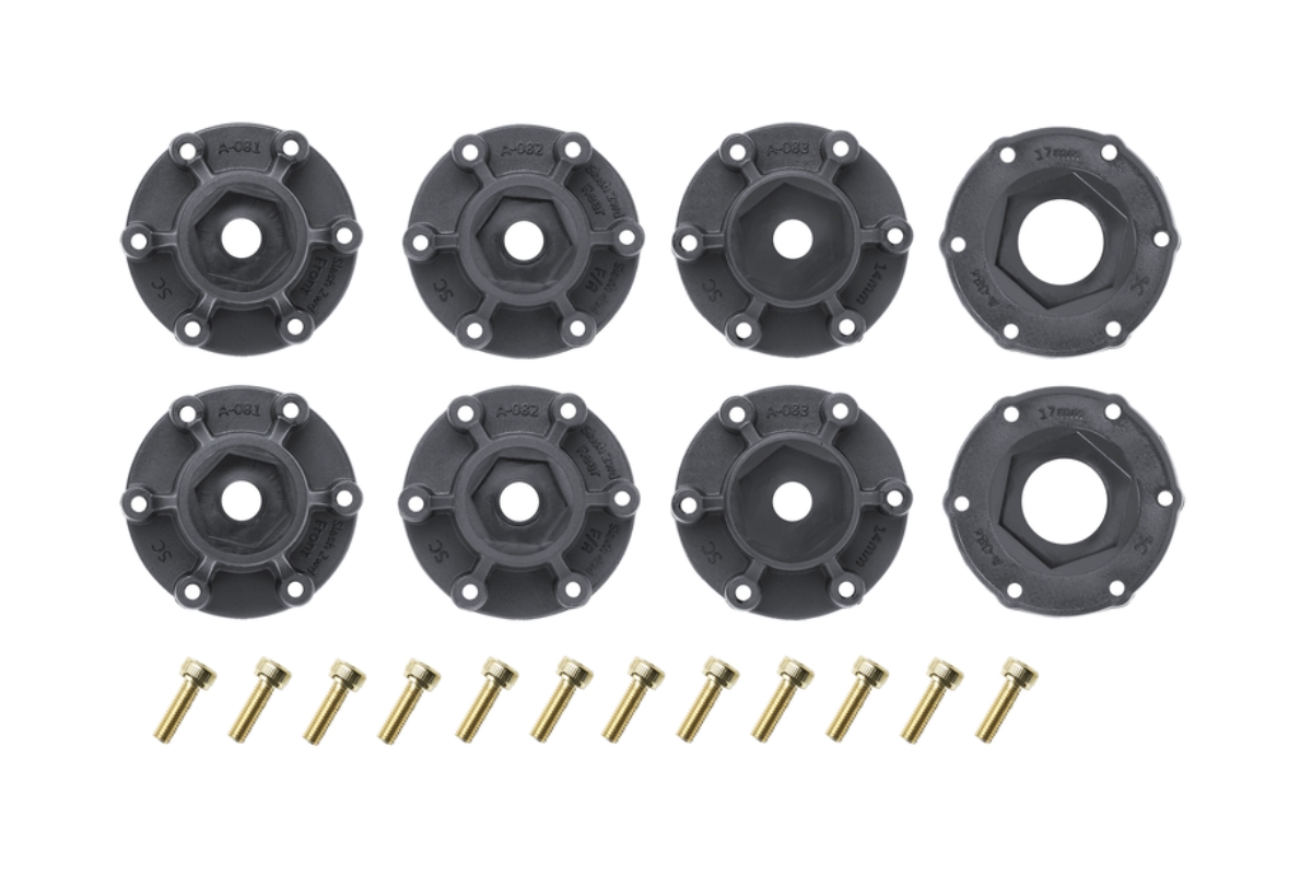 Kompletní kola pro short course trucky 1/10 se sadou vyměnitelných hexů o různých rozměrech a offsetech. Pneumatiky vhodné na tvrdé povrchy.