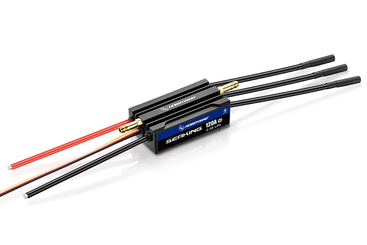 Obousměrný regulátor firmy Hobbywing speciálně určený pro modely lodí. Ideální pro rychlostní čluny do délky 1000mm a makety. Trvalý proud 120A, špičkový 500A. Spínaný BEC 6,0/7,4/8,4V 84A. Napájení 2-6S LiPo. Hmotnost 123,5g. Rozměry 64,7x36,3x22,5mm. Vodotěsný a vodou chlazený.