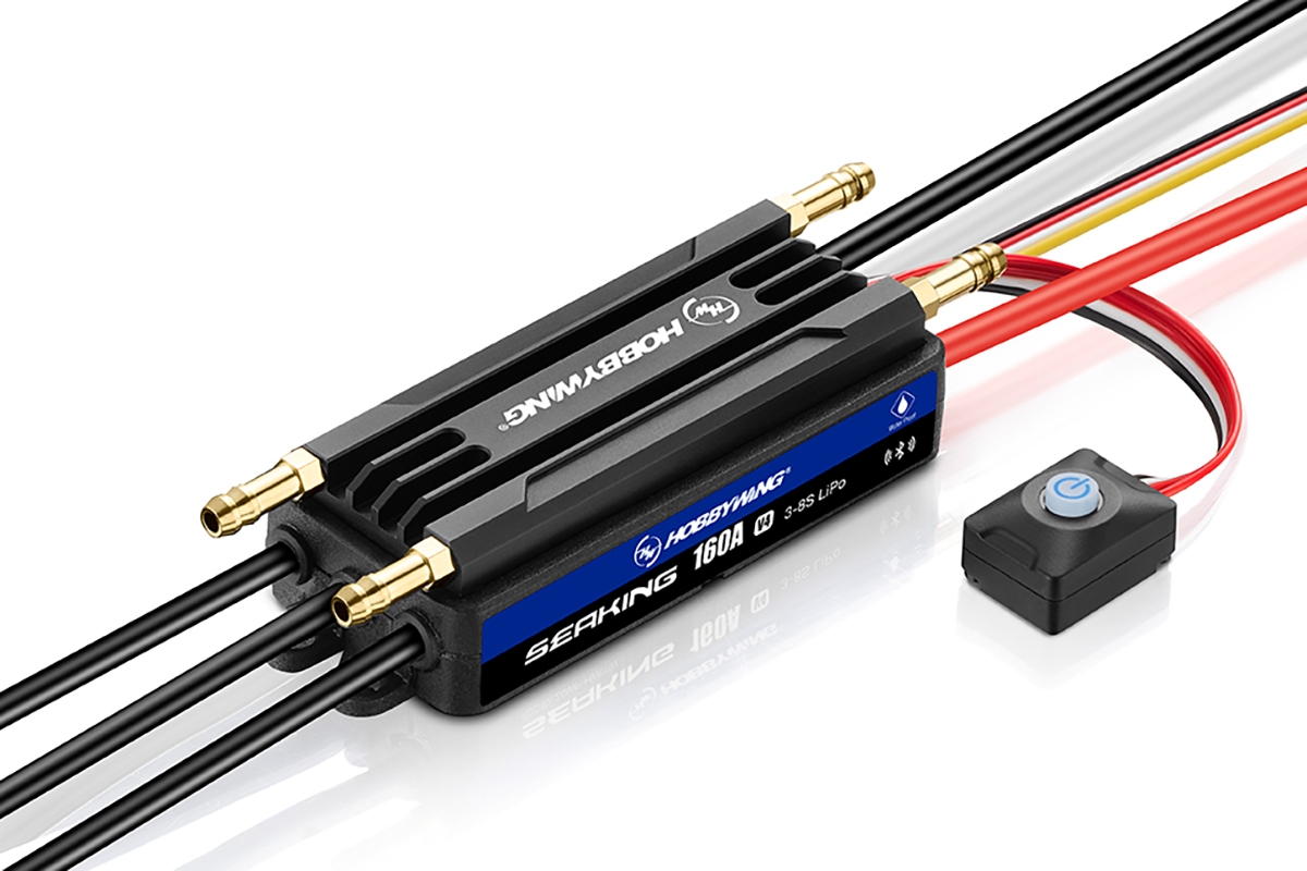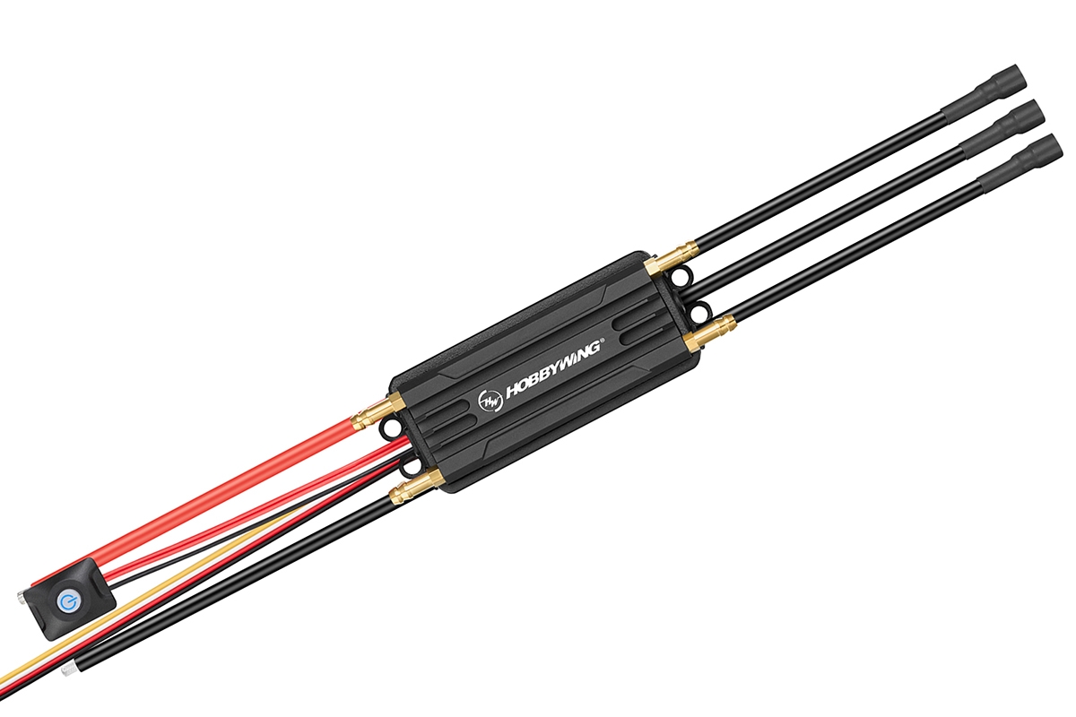 Obousměrný regulátor firmy Hobbywing speciálně určený pro modely lodí. Ideální pro rychlostní čluny do délky 1200mm a velké makety. Trvalý proud 160A, špičkový 800A. Spínaný BEC 6,0/7,4/8,4V 8A. Napájení 3-S LiPo. Hmotnost 22g. Rozměry 91x41x25,5mm. Vodotěsný a vodou chlazený. Vestavěný Bluetooth pro snadné programování v mobilní aplikaci HW Link.