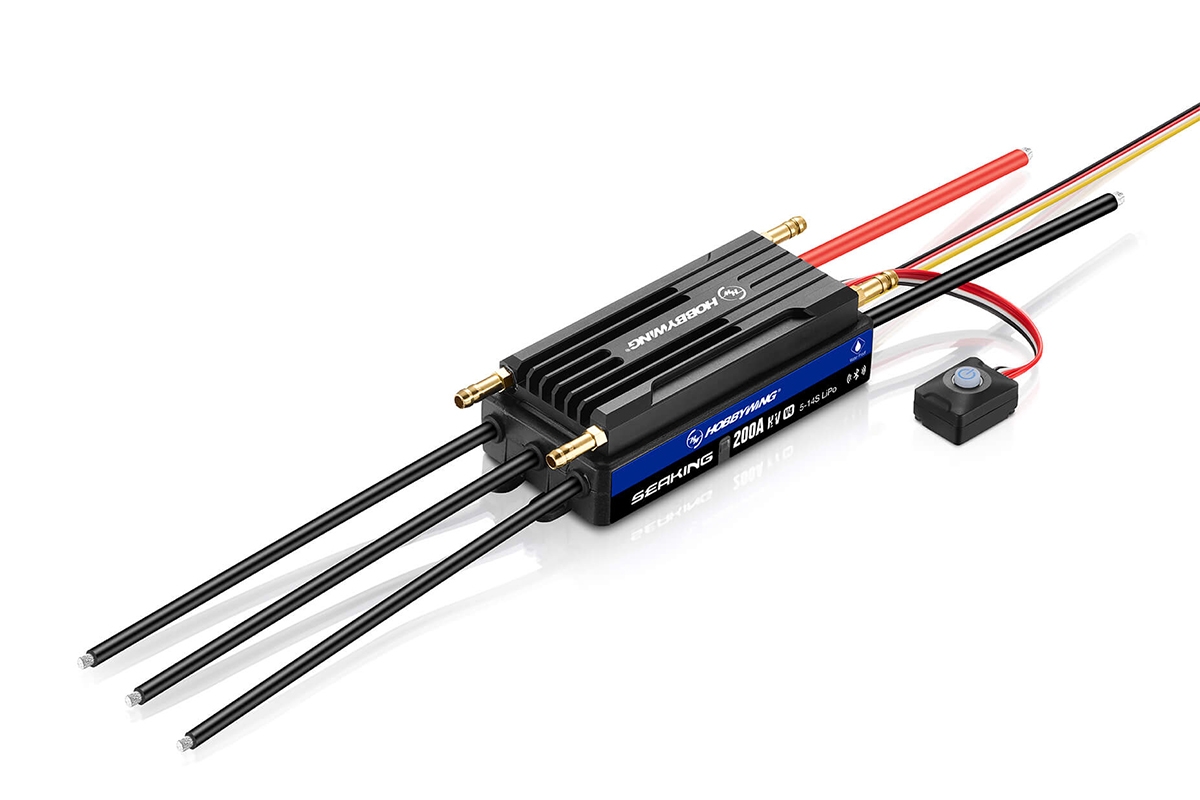 Obousměrný regulátor firmy Hobbywing speciálně určený pro modely lodí. Ideální pro rychlostní čluny do délky 1400mm a velké makety. Trvalý proud 200A, špičkový 1000A. Spínaný BEC 6,0/7,4/8,4V 8A. Napájení 5-14S LiPo. Hmotnost 386g. Rozměry 106x51x31mm. Vodotěsný a vodou chlazený. Vestavěný Bluetooth pro snadné programování v mobilní aplikaci HW Link.