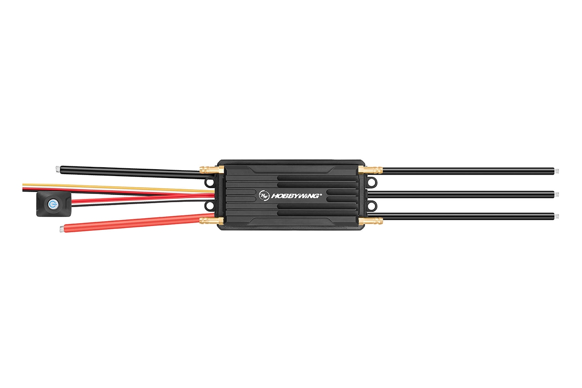 - Vhodný pro valnou většinu lodních střídavých bezsenzorových motorů s napájením z akumulátorů 5-14S LiPo.