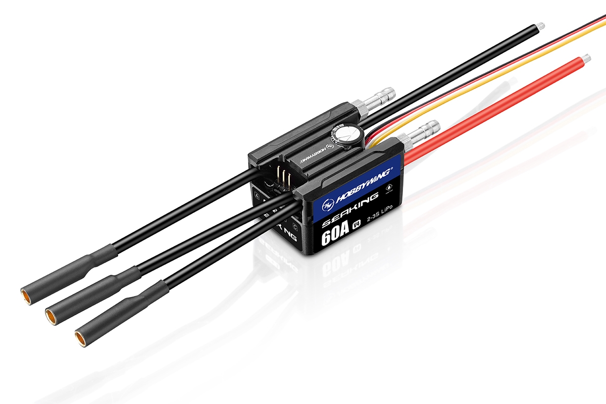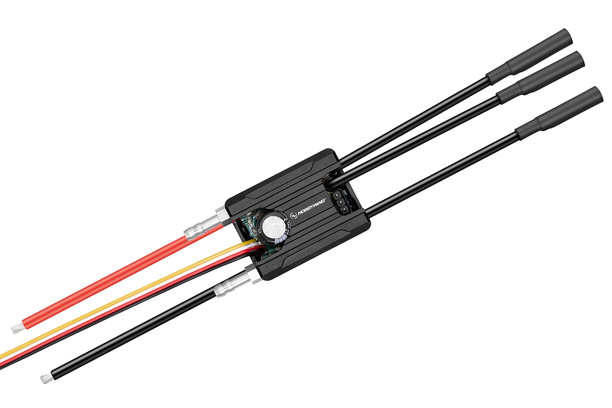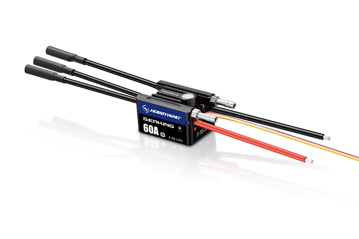 Obousměrný regulátor firmy Hobbywing speciálně určený pro modely lodí. Ideální pro rychlostní čluny do délky 600mm a menší makety. Trvalý proud 60A, špičkový 200A. Spínaný BEC 6,0/7,4V 4A. Napájení 2-3S LiPo. Hmotnost 64,6g. Rozměry 38,7x29x25mm. Vodotěsný a vodou chlazený.