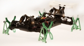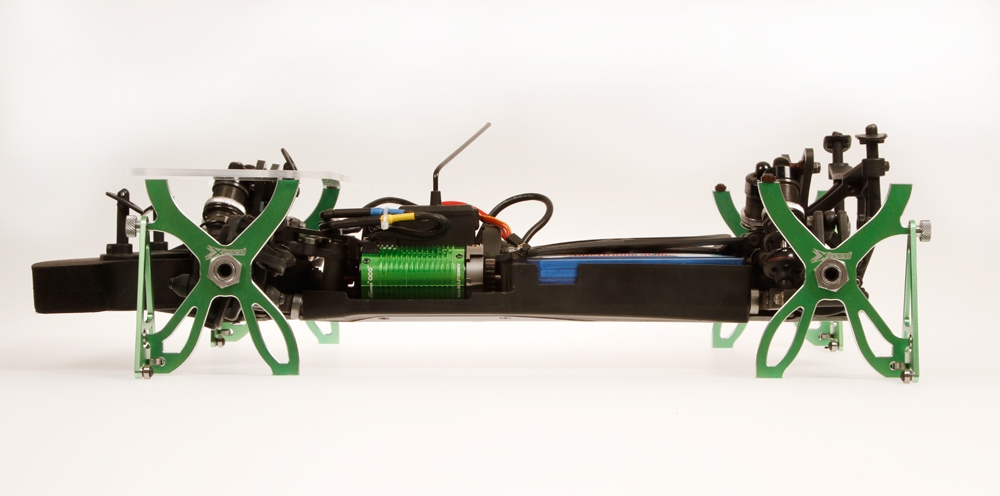 Systém nastavení pro RC aut v měřítku 1/8 Buggy, Truggy a GT (v obou verzích jak elektro tak i spalovák). Zahrnuje - Přesně opracované hliníkové držáky ve studené zelené eloxaci - Vroubkované matice pro snadnou a rychlou montáž kol - Vysoce kvalitní spojovací prvky - Obráběné nylonové výstředníky pro průměr pneumatiky - Plně uložené v kuličkových ložiskách - Přesné gravírování a značení - Polykarbonátová horní deska - Praktický úložný vak