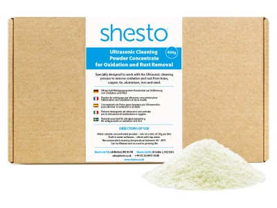 Speciálně navržený koncentrovaný prášek rozpustný ve vodě, pro ultrazvukové čištění k odstranění oxidace a rzi z mosazi, mědi, cínu, hliníku, železa a oceli. Vytvoření až 20 l roztoku z 400 g koncentrátu. Pro prodloužení životnosti lze roztok filtrovat a znovu použít. Práškový koncentrát se oproti klasickým roztokům snáze skladuje.