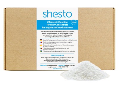 Speciálně navržený koncentrovaný prášek rozpustný ve vodě, pro ultrazvukové čištění k odstranění mastnoty, oleje, zbytků benzínu, uhlíku a nečistot z automobilových a strojních dílů, včetně karburátorů, ventilů a dalších. Vytvoření až 10 l roztoku z 200g koncentrátu. Pro prodloužení životnosti lze roztok filtrovat a znovu použít. Práškový koncentrát se oproti klasickým roztokům snáze skladuje.