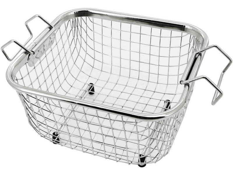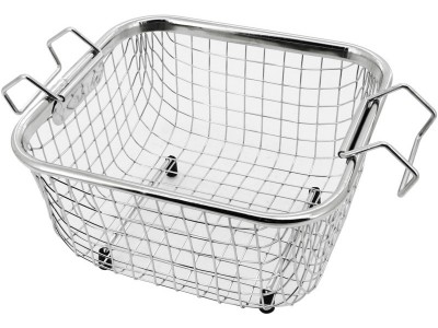 Shesto košík do ultrazvukové čističky 2l (SH-UT8021/EUK) z drátěného pletiva na jemné předměty. Má pohodlné rukojeti, které přesahují okraj vany, což umožňuje bezpečné a snadné přemístění čištěného předmětu během cyklu čištění ultrazvukem.