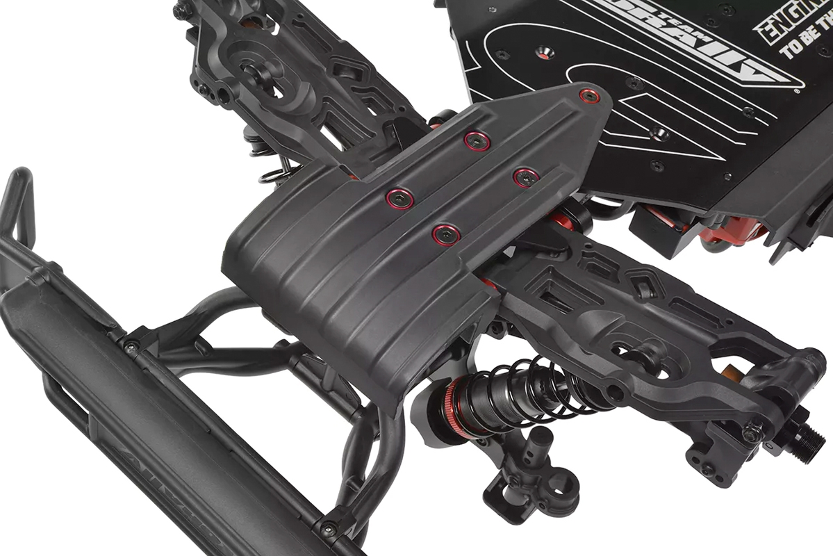 Jádrem modelu SHIROI je CNC frézované 3mm hliníkové plato podvozku, vyztužené vzpěrami a vysokými kompozitními bočními chrániči. Tato tuhá kostra je konstruována tak, aby s lehkostí zvládala jízdu ve vysoké rychlosti, drsný terén a náročné dopady. Neprůstřelné ocelové hnací ústrojí s CNC frézovanými ozubenými koly, třemi diferenciály naplněnými olejem a odolnými hnacími hřídeli CVD zajišťuje maximální účinnost a spolehlivost jak při napájení 4S, tak i 6S LiPo.